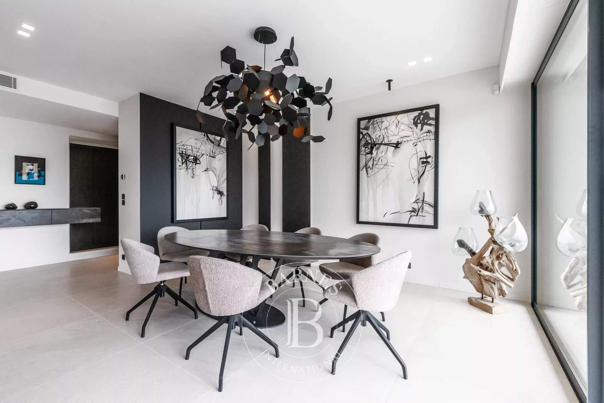Experience unparalleled luxury in this magnificent, newly-built contemporary villa, located in a secure estate with breathtaking panoramic views of the sea and mountains. Walking distance from the village of Chateauneuf Pre du Lac and a short drive from Opio and Valbonne and 25 minutes by car to the coast, this 560 m² villa is a true masterpiece of modern design. The expansive, light-filled interiors boast 5 spacious en suite bedrooms, an open-plan fully equipped kitchen, a well equipped gym and a vast living and dining area?all opening onto a generous terrace where you can enjoy sweeping vistas from Nice to the Estérel mountains. Whether you're entertaining or simply relaxing, the views alone will take your breath away. Outside, indulge in the villa's incredible amenities: a large saltwater swimming pool surrounded by ample sun loungers, a petanque court, table tennis, and a fully equipped gym. For ultimate relaxation, unwind in the steam room or sauna, or enjoy a movie night in the state-of-the-art home cinema and games room. Set within a lush, tranquil garden, this exceptional villa offers complete privacy and serenity, making it the ideal escape for families or groups of friends. With parking for 5 cars and an electric charging point, every detail has been considered to ensure your comfort.
